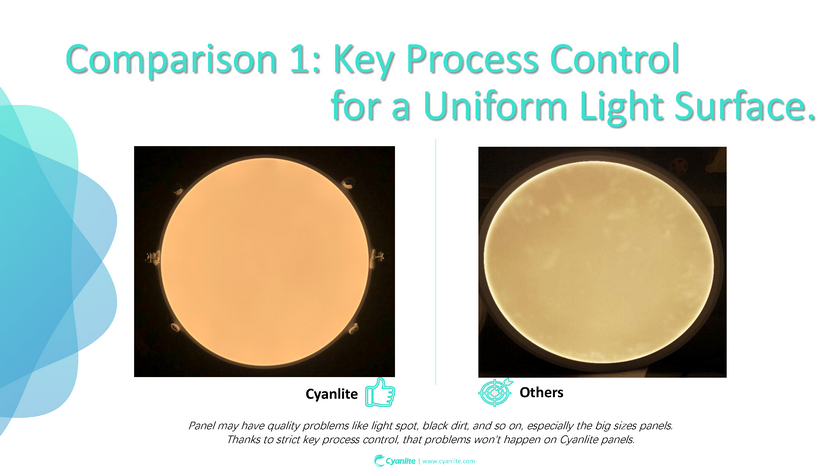 l non-yellowing PMMA light guide; uniform light surface, no light spots, no shadow